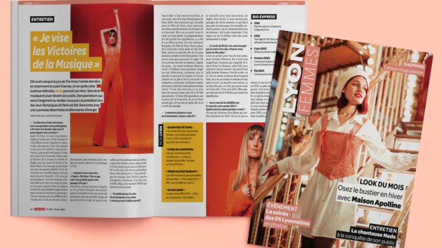 Elle avait conquis le jury de The Voice l’année dernière, et notamment le coach Vianney. Un an après cette aventure télévisée, Nade poursuit son rêve : faire de la musique et jouer devant son public. Des spectateurs qui seront largement au rendez-vous pour sa prestation lors des Jeux Olympiques de Paris cet été. Rencontre avec une Lyonnaise déterminée et débordante d’énergie.