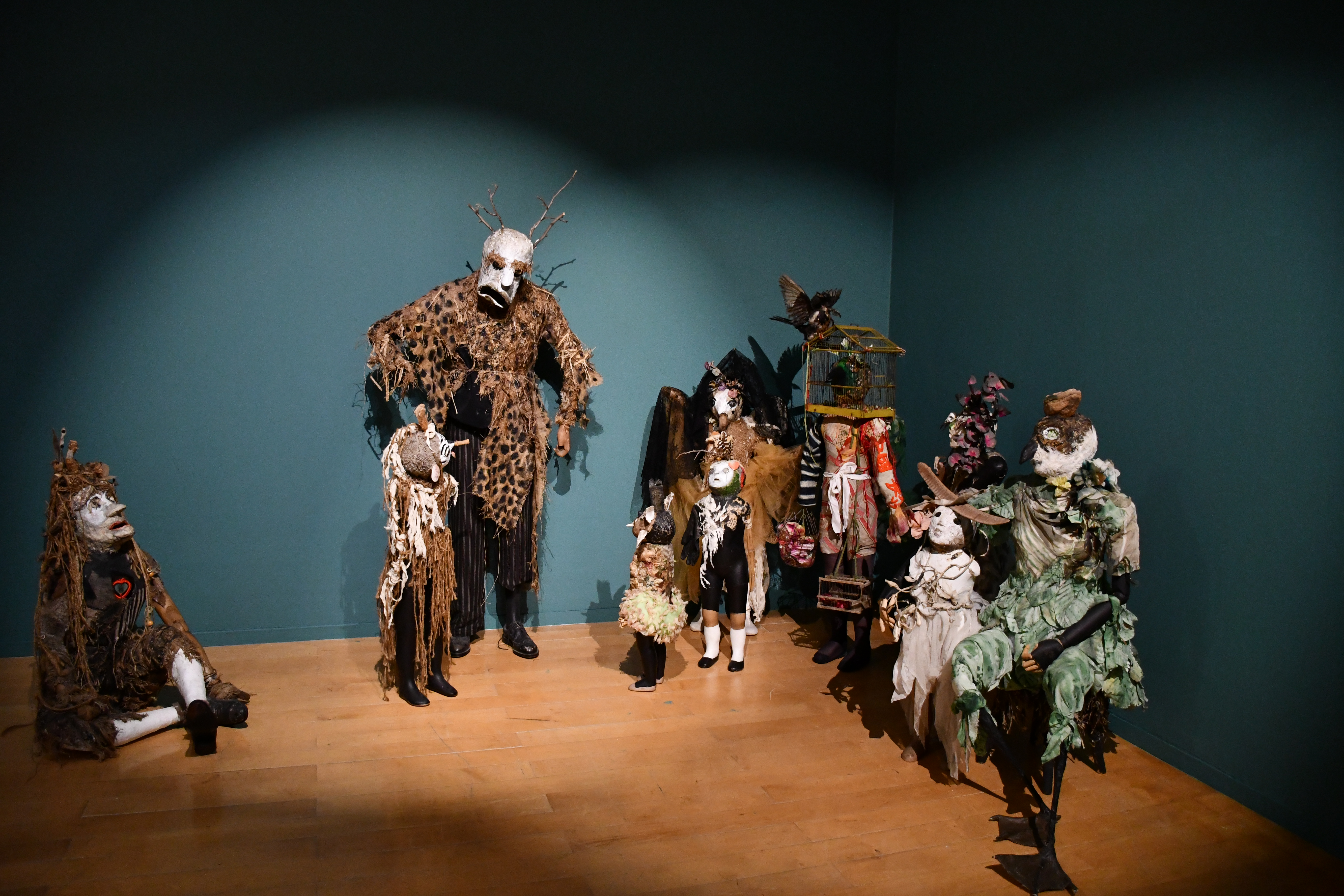 D’autres réalisations de l’artiste sont mises en avant, puisqu’elle maîtrise en plus de la peinture, la broderie et la sculpture. Ainsi, la Weird Family est exposée également, des mannequins confectionnés par ses soins et créés à partir de papier mâché. Ses “monstres“ portent tous un nom et elle compte aujourd’hui une trentaine de membres dans sa collection.