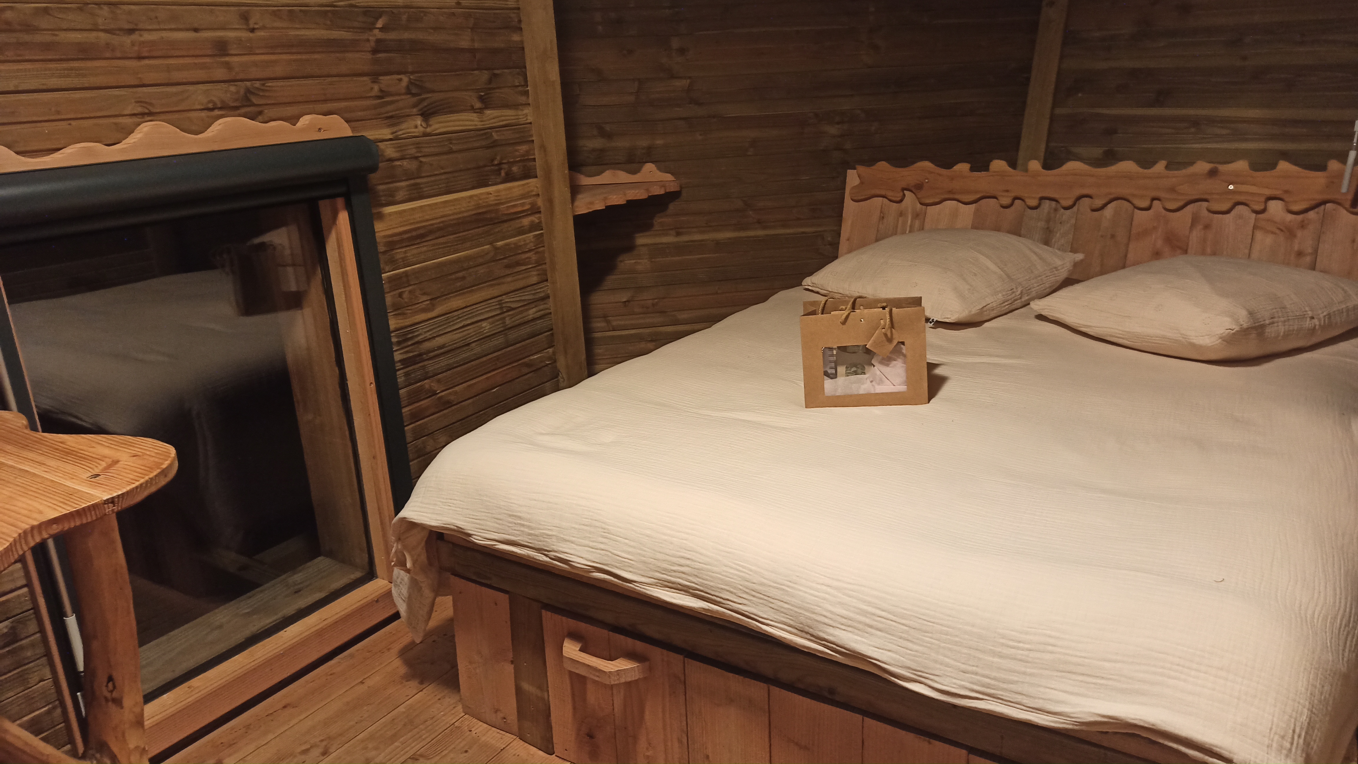 Après quelques détours à cause d’un certain manque d’orientation et d’un GPS un peu récalcitrant, j’arrive dans ce village qui porte bien son nom. Devant moi, dix cabanes nichées dans les arbres, dont une en accès PMR, regroupées en essaim autour d’une zone d’accueil. C’est Florence, employée de la COR, qui vient à ma rencontre. Après un rapide tour du propriétaire lors duquel elle m’attribue la cabane Alouette et me fait choisir mon repas pour le dîner parmi plusieurs options, Florence me propose d’aller me détendre dans un sauna que l’on peut privatiser en supplément de la réservation d’une nuitée. Un pur moment hors du temps s’offre alors à moi. Après une demi-heure passée à plus de 80 degrés et une bonne douche, c’est complètement relaxée que j’entreprends d’accéder jusqu’à ma chambre.
