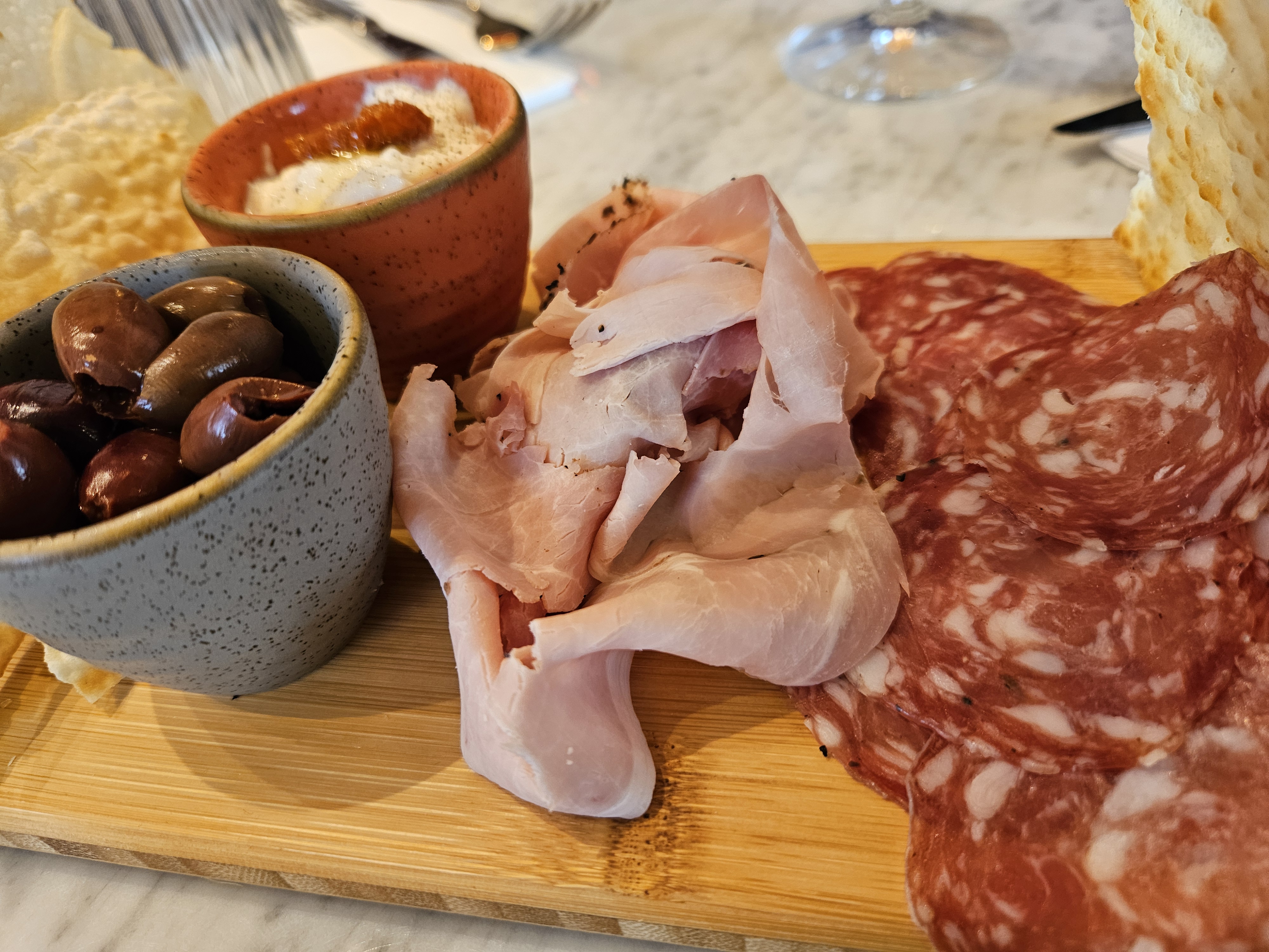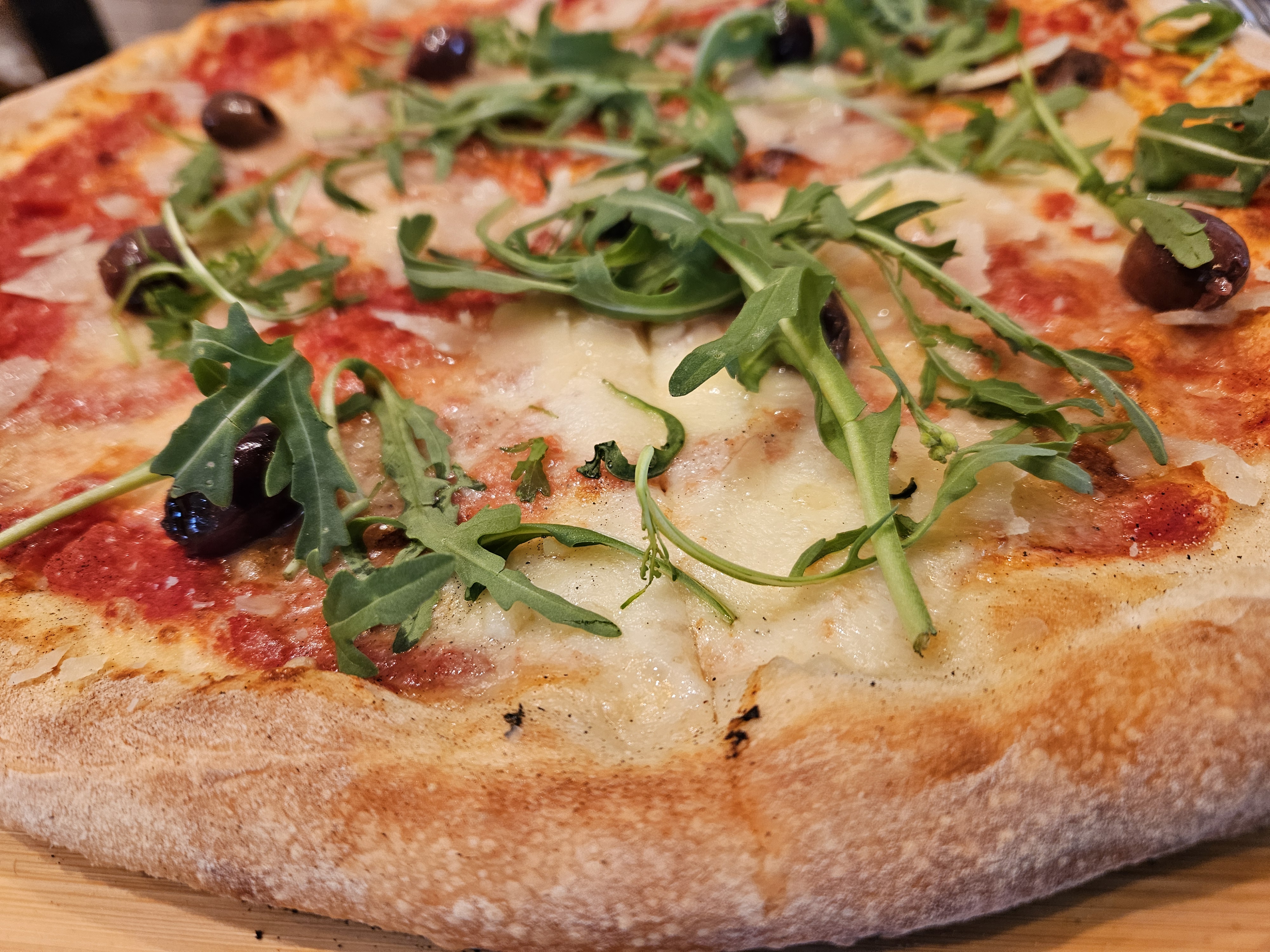 Là-aussi, le défi est relevé avec un rapport qualité-prix indiscutable et un choix étoffé de pizzas, pâtes, salades et desserts. Le prix de la pizza débute d’ailleurs à 13 euros tandis que le cocktail (notamment l’incontournable Spritz) coûte de 8 à 9 euros. Mention spéciale pour la planche à partager (17 euros) et son saucisson à la truffe d’été (le coup de cœur de la rédac).
