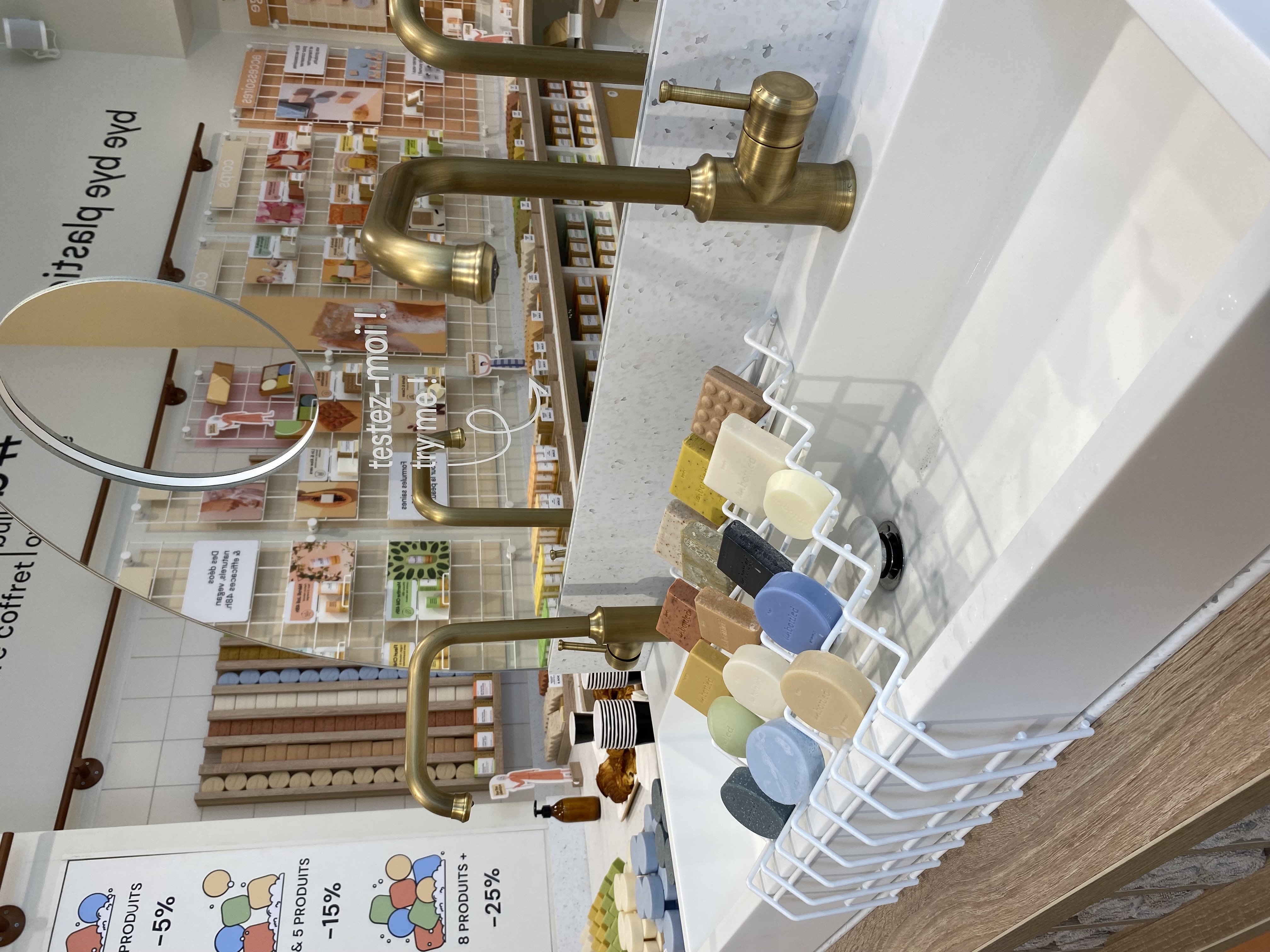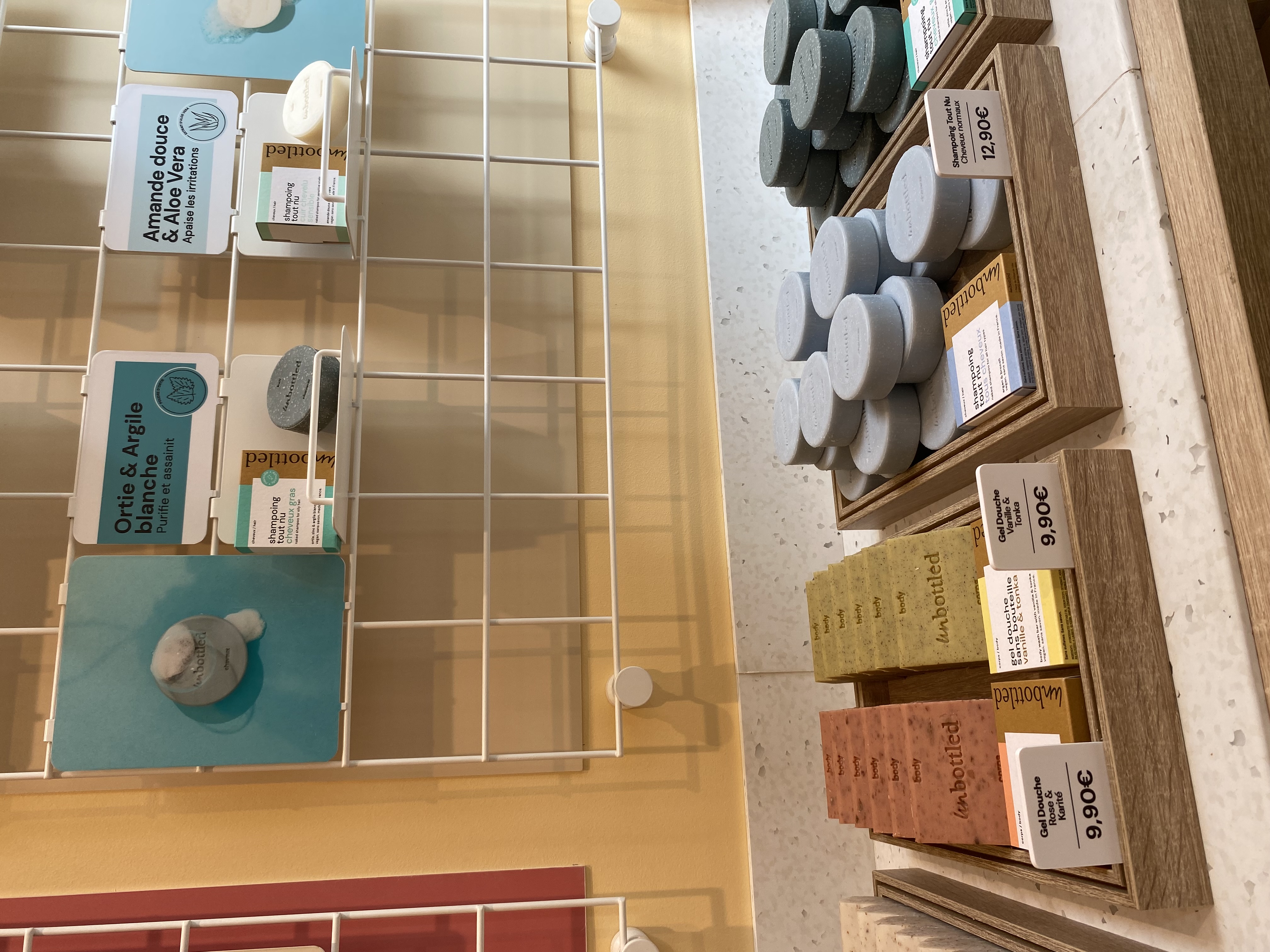 Mais revenons-en à cette toute nouvelle boutique, colorée et lumineuse. Dans les rayons, on y retrouve du shampoing solide, du savon pour le corps, des masques pour le visage et même de la crème solaire en stick. Ici, on fait la chasse au plastique. Tous ces produits solides sont proposés en vrac, avec la possibilité de composer des box sur-mesure. Unbottled, c’est des produits sans savon et au pH neutre, fabriqués dans le sud de la France.