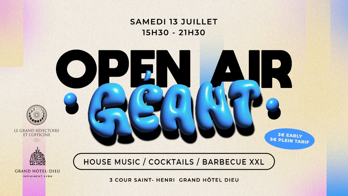 Samedi 13 juillet - Open air géant au Grand Hôtel Dieu, Lyon 2
