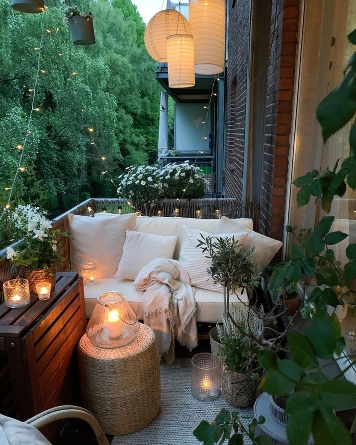 Celles et ceux qui ont un balcon peuvent aussi laisser leur créativité s’exprimer en extérieur, en créant un petit coin café ou lecture pour profiter des soirées d’été, "toujours en essayant de garder une harmonie avec l’intérieur" rappelle Amélie. "On peut créer un coin détente avec un amas de coussins, un gros pouf, intégrer un petit espace repas pliant pour l’apéro. Pour les petits espaces, on privilégie les étagères murales, avec un esprit guinguette grâce à des lanternes et des guirlandes solaires".