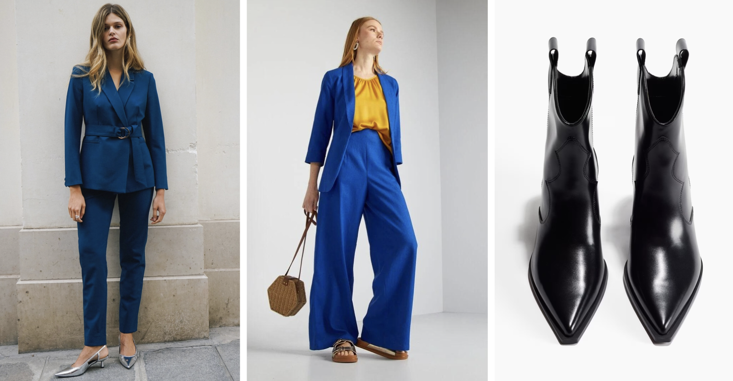 Emily est une grande adepte des couleurs et d’associations toujours très audacieuses. Elle captera encore tous les regards dans ce costume bleu cobalt parfaitement ajusté et accompagné de bottes pointues de la maison Rabanne. Du côté de Lyon, vous pourrez retrouver un tailleur bleu sur mesure chez 17h10 ou encore un modèle plus estival chez Kiabi. Pour les bottes, H&M propose un très beau dupe façon satinags.