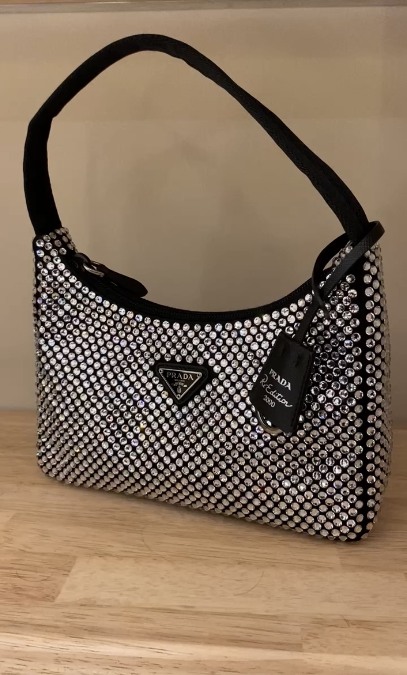 Mini sac en cristaux Prada, Doublure en satin de soie.