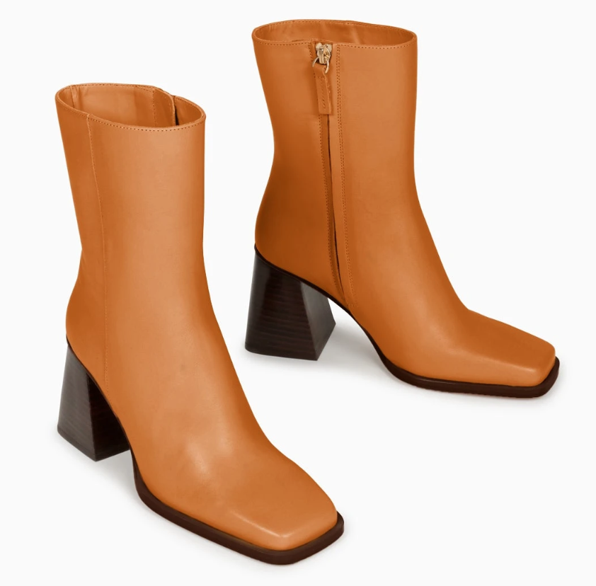 Bottes à talons en cuir camel