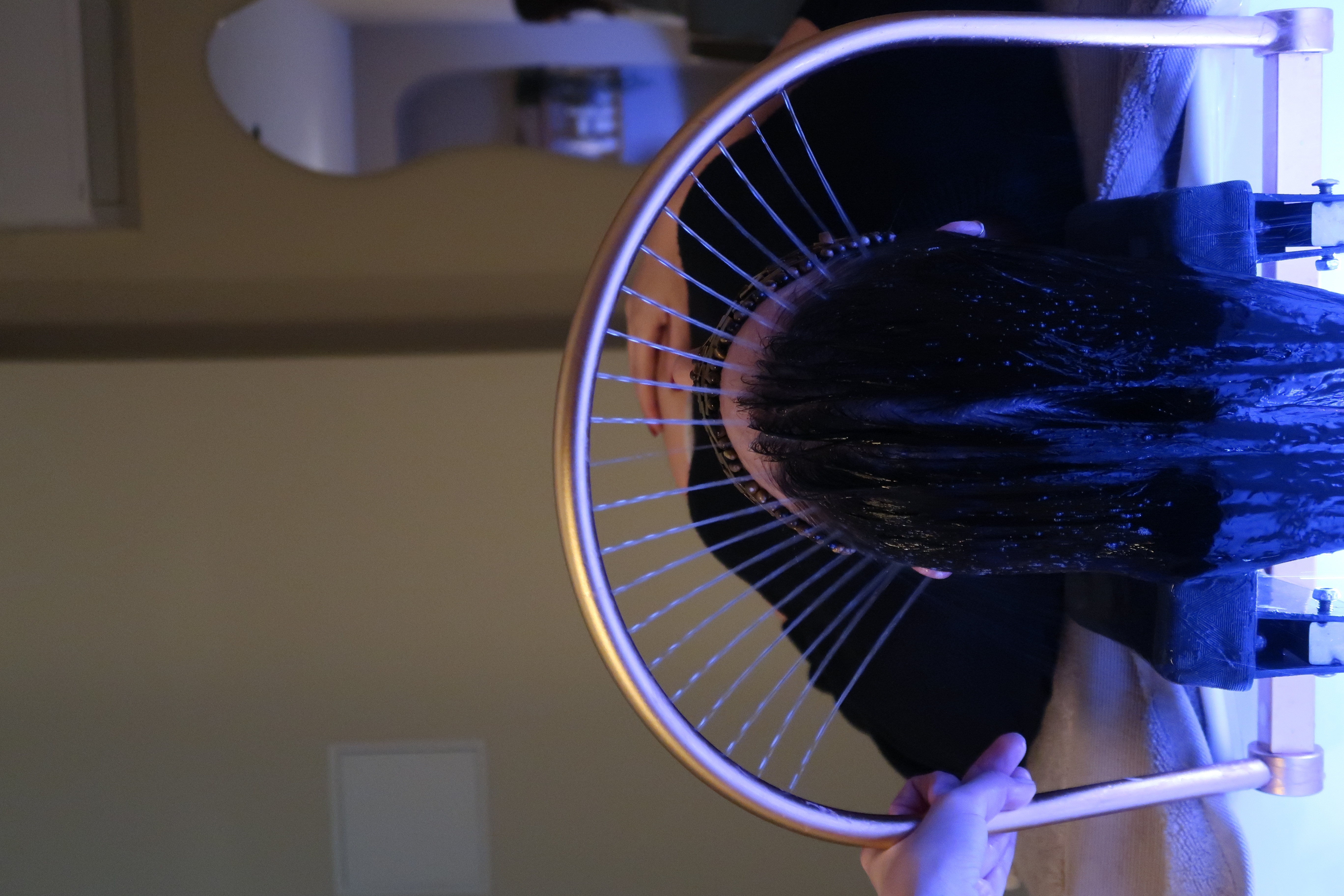 Anaïs commence par nous masser le crâne doucement, ainsi que la nuque et les épaules. Le massage continue au niveau du crâne, cette fois-ci à l’aide d’une brosse. Plusieurs brosses seront d’ailleurs utilisées tout le long du soin. Anaïs procède à l’exfoliation et à la nutrition de notre cuir chevelu, afin de le purifier et de débarrasser nos cheveux des impuretés. Adieu la pollution lyonnaise, et bonjour la douceur !