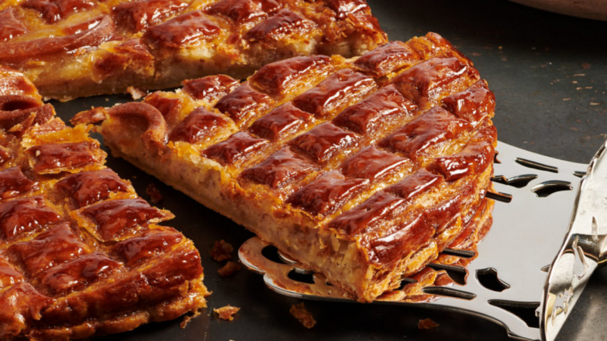 Pas besoin d’aller chercher loin pour trouver une galette atypique. Sébastien Bouillet réinvente la galette des rois avec une création audacieuse, la galette façon Tatin. Ce dessert associe une pâte feuilletée croustillante à des pommes caramélisées, délicatement dorées, qui rappellent les saveurs de la célèbre tarte Tatin. À mi-chemin entre tradition et innovation, cette galette offre une expérience gourmande et unique, séduisant autant les amateurs de pâtisseries authentiques que ceux souhaitant découvrir de nouvelles saveurs. Elle est d’ailleurs devenue la deuxième galette la plus vendue après la frangipane.