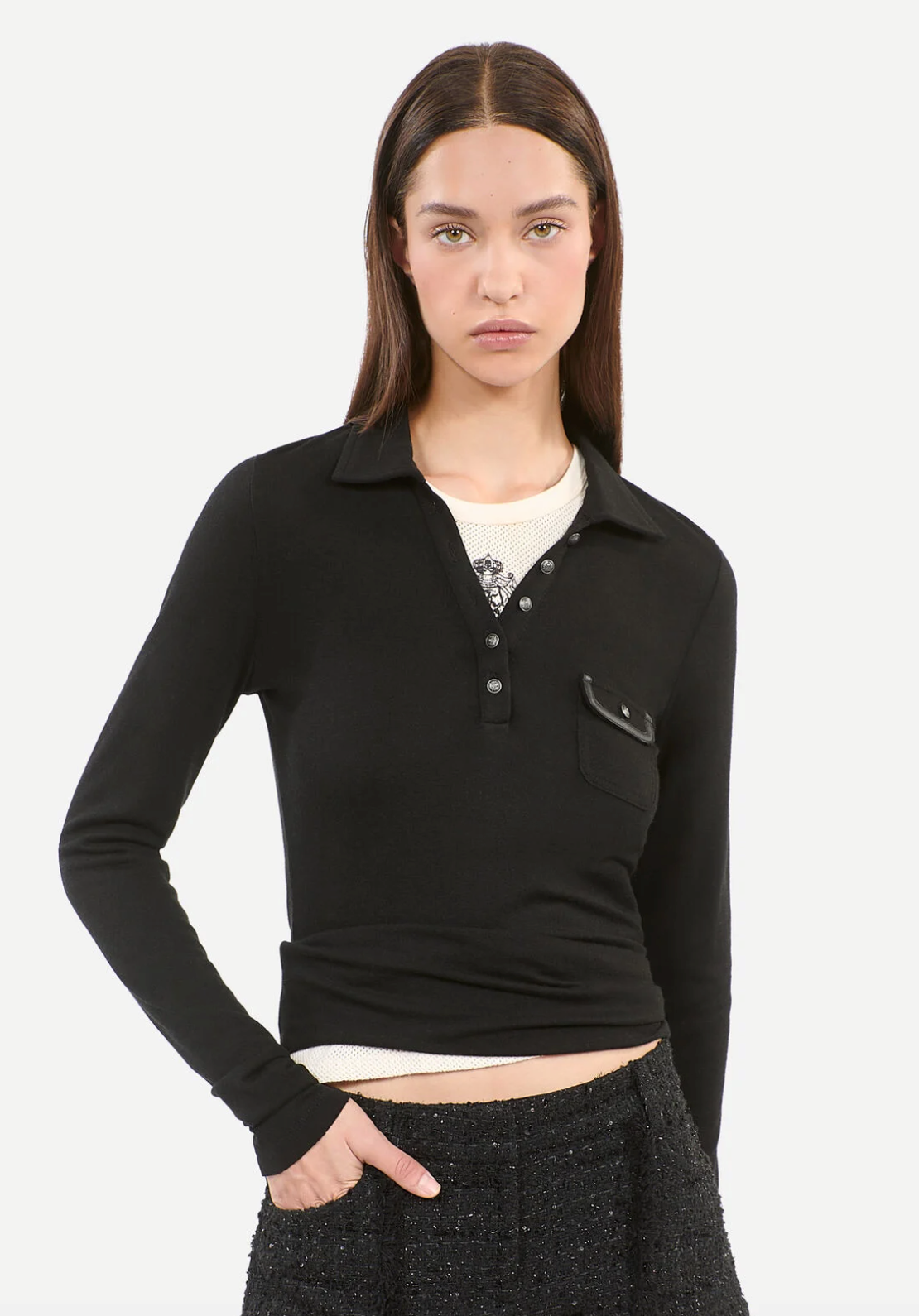 Polo manches longues noir The Kooples, disponible chez The Kooples, Lyon 2, 165 euros