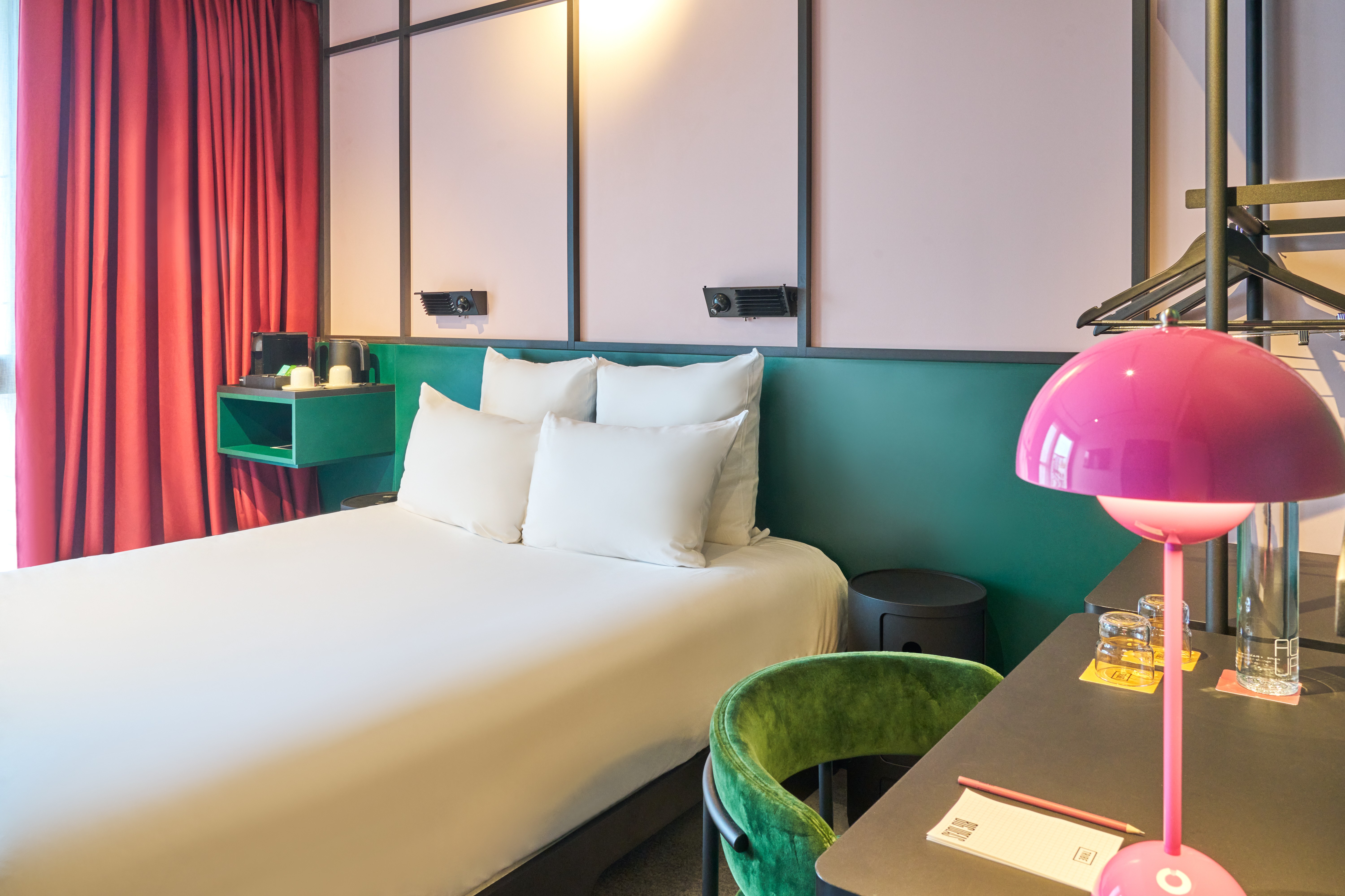 Devenu une véritable institution dans le 7ème, le Mama Shelter ne déçoit jamais. On aime sa déco minimaliste et atypique des chambres, et l’explosion de couleurs et de vie dans les espaces communs. Cet hôtel ravira les couples fêtards avec ses DJ Sets dans le bar. Avis aux couples gourmands : le petit déjeuner en mode buffet est une pépite ! + Infos.