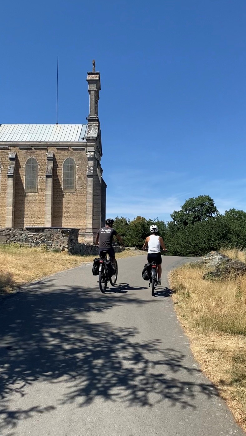 C’est par une belle journée ensoleillée que l’on se dirige vers Odenas, au pied du Mont Brouilly. On est accueillies par Aurélien Lapalus, le créateur de Semita Tours et notre guide oenotouristique pour cet après-midi découverte. Il nous assigne un vélo à assistance électrique adapté à notre taille, des sacoches ainsi qu’un casque. Après un briefing, le groupe d’une petite dizaine de personnes s’élance en direction des vignes pour une balade d’environ deux heures. L’après-midi s’annonce sportive !
