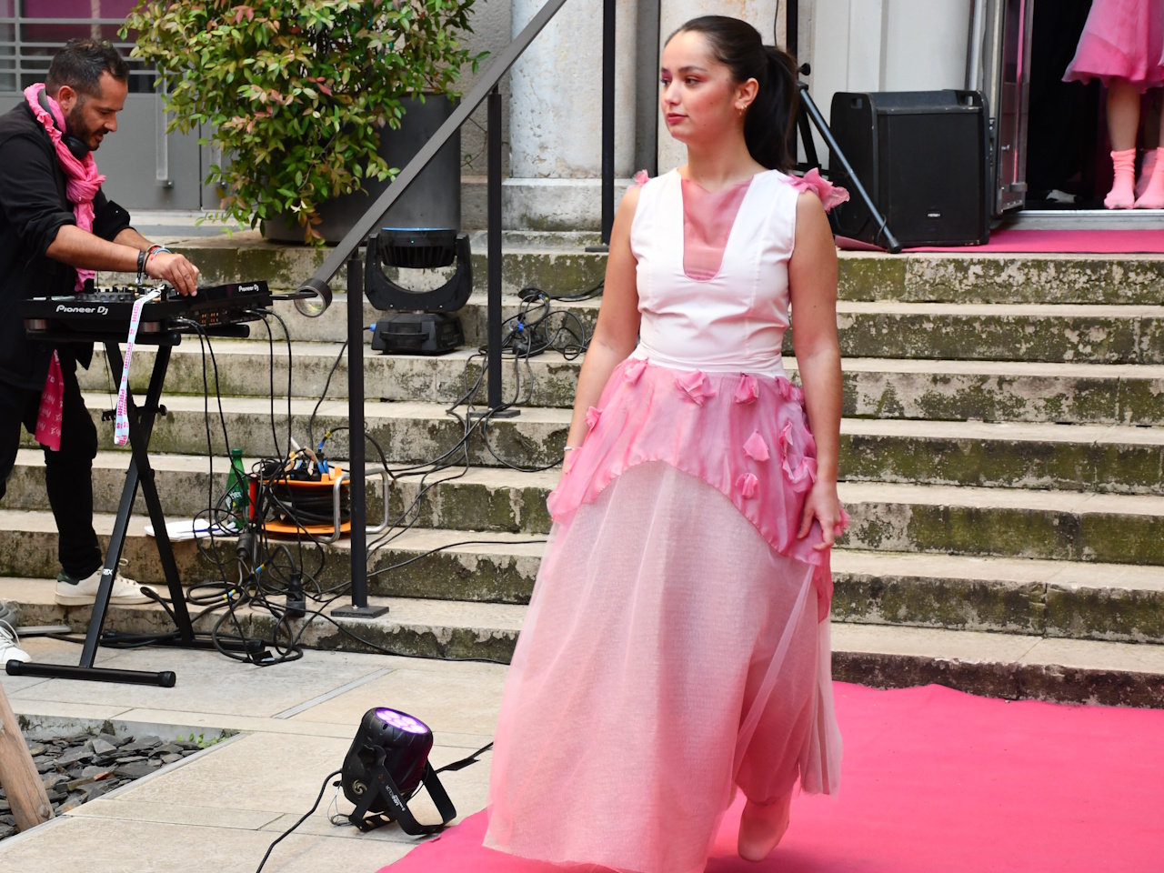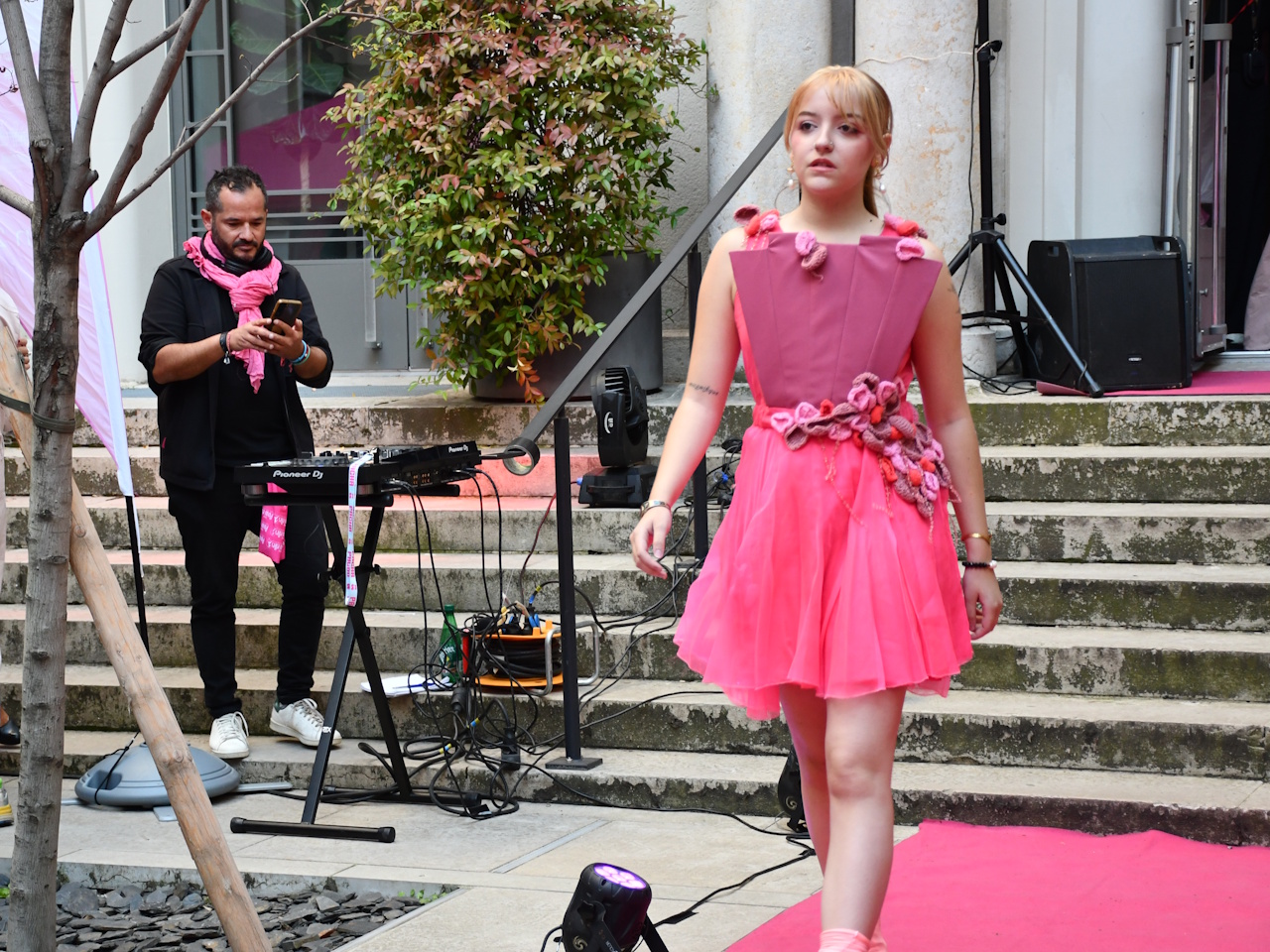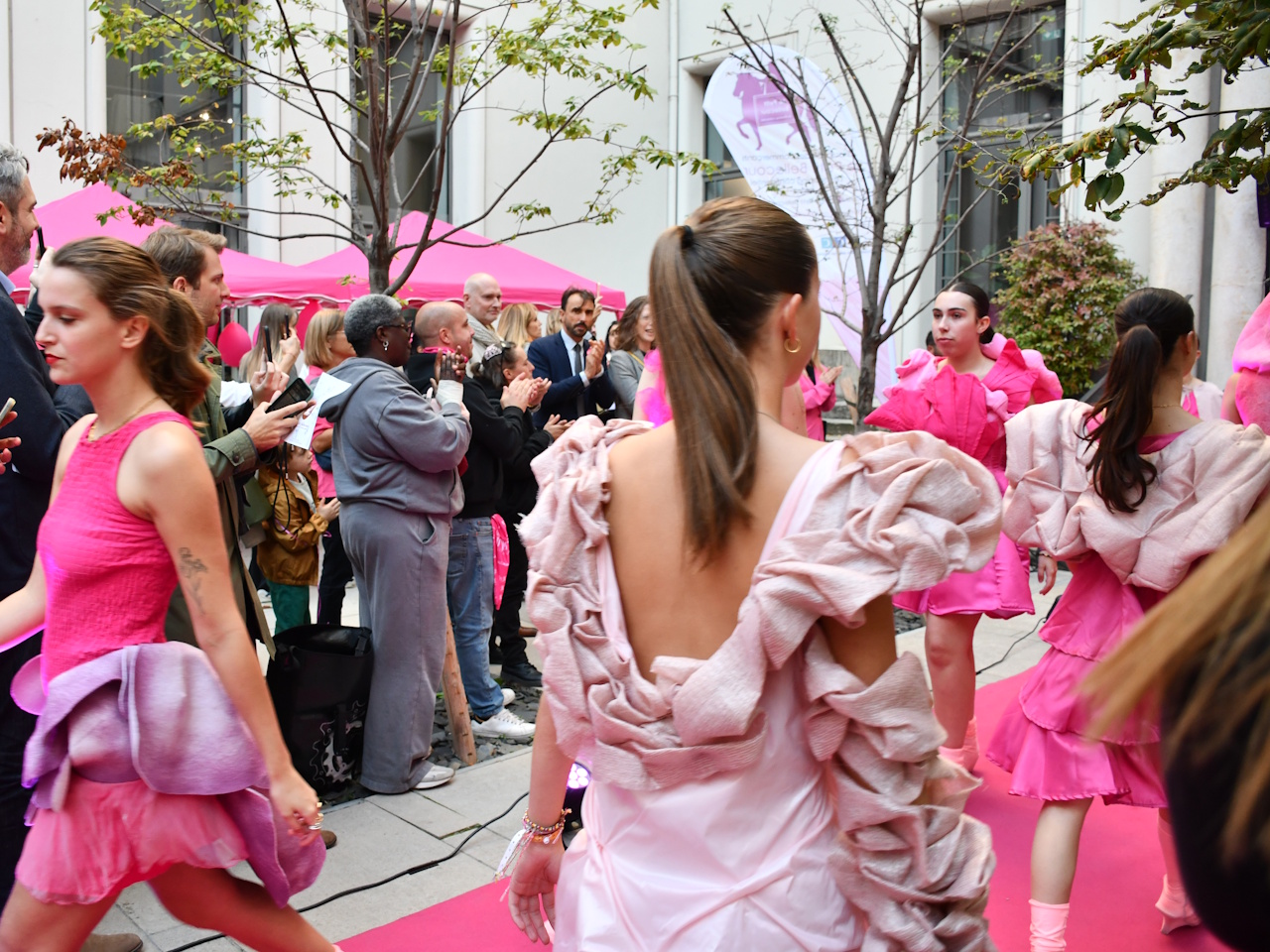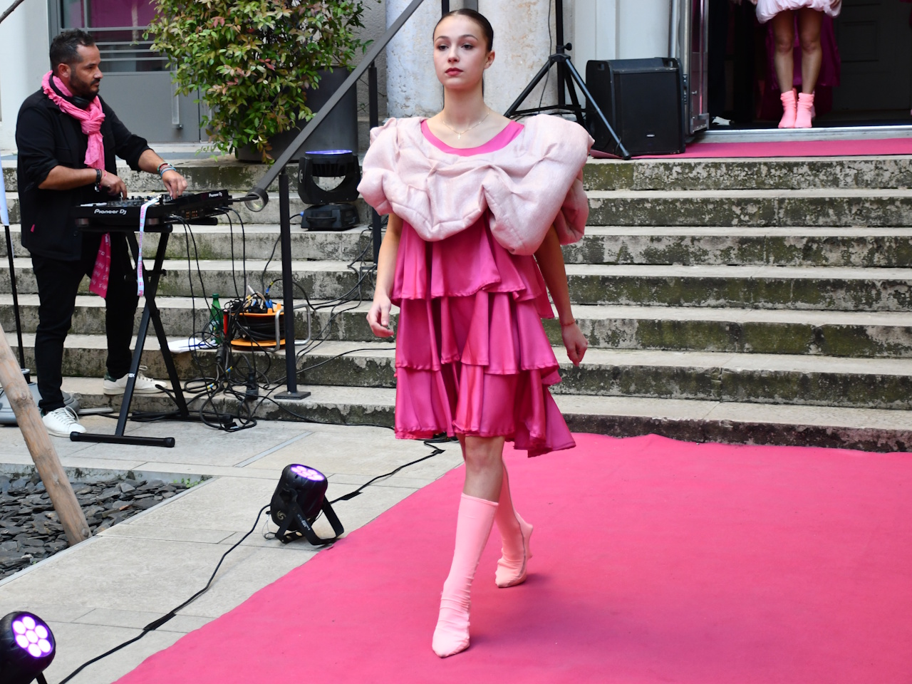 L’association Courir pour elles avait décidé de s’associer pour l’occasion avec l’école ESMOD Lyon pour un défilé "En rose". Ce sont en tout plus d’une vingtaine de tenues qui ont été présentées au public, toutes ayant une signification en rapport avec Lyon, notamment la praline rose. Marraine de l’évènement, la créatrice de mode Nathalie Chaize a ensuite officiellement inauguré Octobre rose avant un flashmob des commerçants.