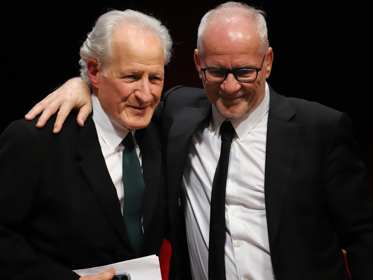 "Ce soir restera gravé dans ma mémoire ! Merci !" Tels furent les mots de Michael Mann au moment de recevoir le Prix Lumière 2025 des mains d’Isabelle Huppert ayant reçu la même récompense l’année dernière. L’actrice n’a d’ailleurs pas manqué de saluer le réalisateur américain. "Au nom du cinéma merci de continuer à nous surprendre et à nous déranger. Merci pour cette fidélité que vous portez à la lumière et que cette lumière vous accompagne. Vive le cinéma", a-t-elle déclaré dans un discours. L’actrice et présidente de l’Institut Lumière Irène Jacob a également prononcé un discours en l’honneur de Michael Mann. "Nous sentons de la reconnaissance pour votre cinéma. Thank you !", a-t-elle assuré dans un sourire.