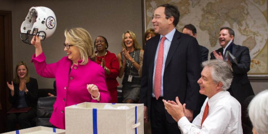 Ovationnée par 75 collaborateurs qui lui ont offert un casque et un maillot de football américain, Hillary Clinton apparaît tout sourire et dans une éclatante veste rose fuchsia sur des photographies savamment diffusées par ses conseillers, qui ont assuré que la chef de la diplomatie américaine était "superbe" et avait "l'air totalement rétablie".