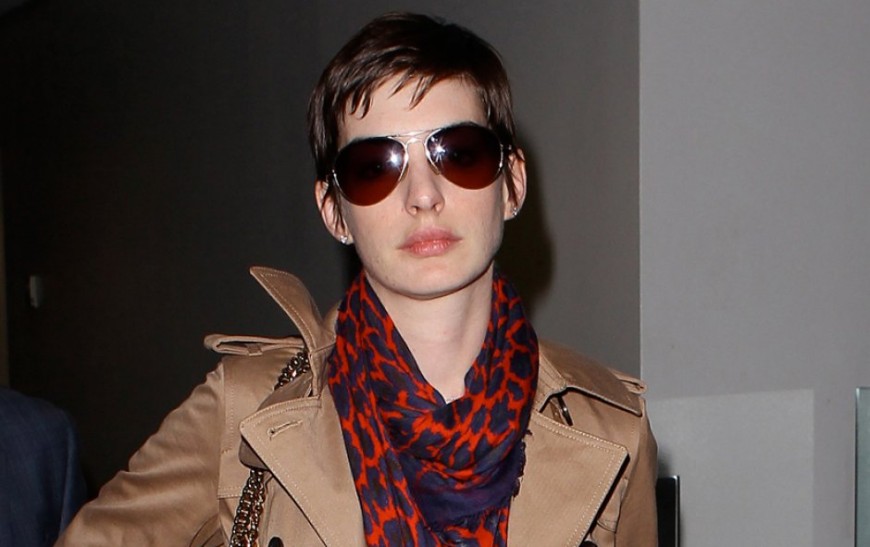 Contrairement à l’écharpe, il n’a pas vocation à vous réchauffer, mais seulement à habiller et colorer un tant soit peu votre tenue. Et ça marche.Jean, tee-shirt et trench, le combo est on ne peut plus classique pour Anne Hathaway. Pour habiller sa tenue, la comédienne des Misérables a misé sur un foulard rouge tacheté de violet. La bonne astuce quand il est noué de cette façon, c’est de le prendre très long, que les pans retombent de chaque côté.