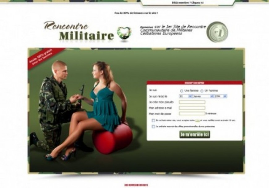 Que vous soyez une femme militaire ou en quête d’un militaire, sachez qu’il existe un site dédié à ce type de rencontres. Gratuit pour les femmes, « Rencontre militaire » se revendique comme étant « le 1er site de rencontre communautaire de militaires célibataires européens ». Belle accroche mais en y regardant d’un peu plus près, il s’avère que le site semble avoir été déserté depuis quelques temps. De plus, le site n'est pas réservé aux professionnels des armées et n'importe qui peut s'y inscrire. Fan du treillis, passez votre chemin.