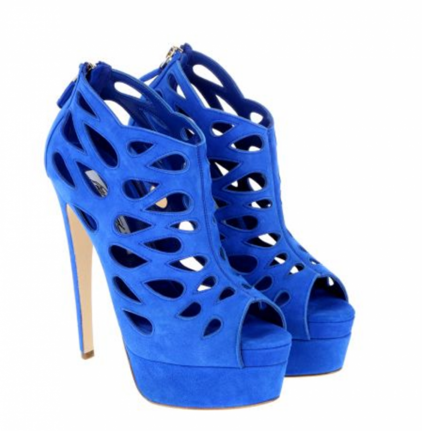 Sandales à plateforme en veau velours découpé dans un motif gouttes d'eau. Zip arrière.
