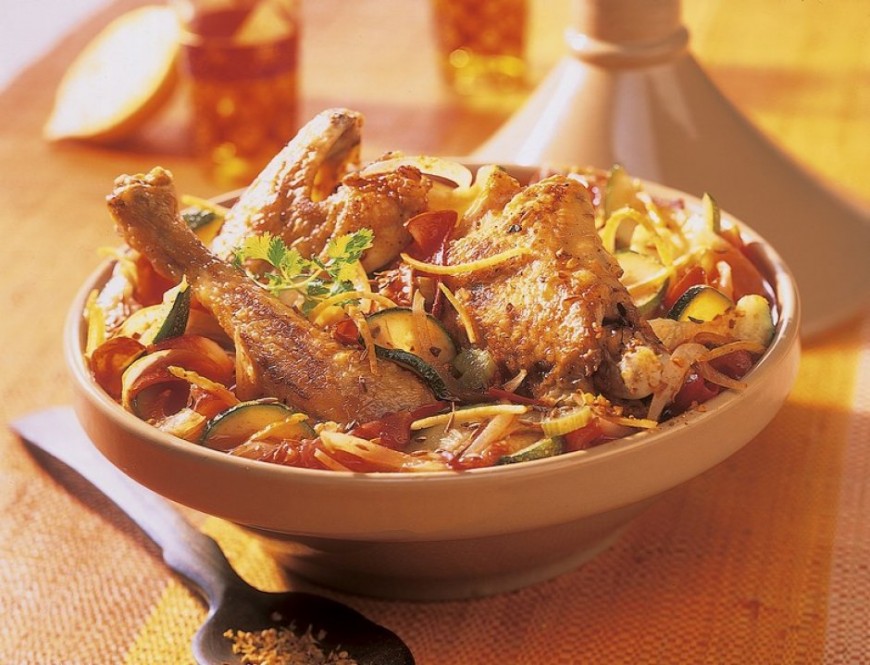Je vous conseille de posséder un grand plat à tajine, sinon tous les ingrédients ne rentreront pas. Normalement on ne doit pas ouvrir le plat pendant la cuisson mais moi je préfère remuer de temps en temps.
