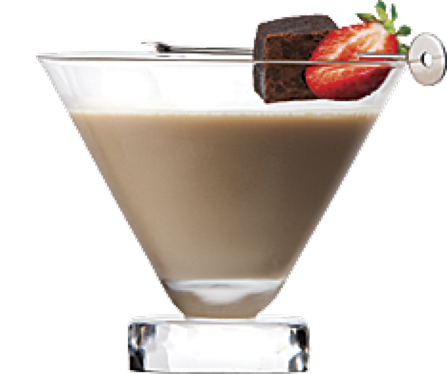 Versez tous les ingrédients (sauf le minibrownie et la fraise) dans un shaker.