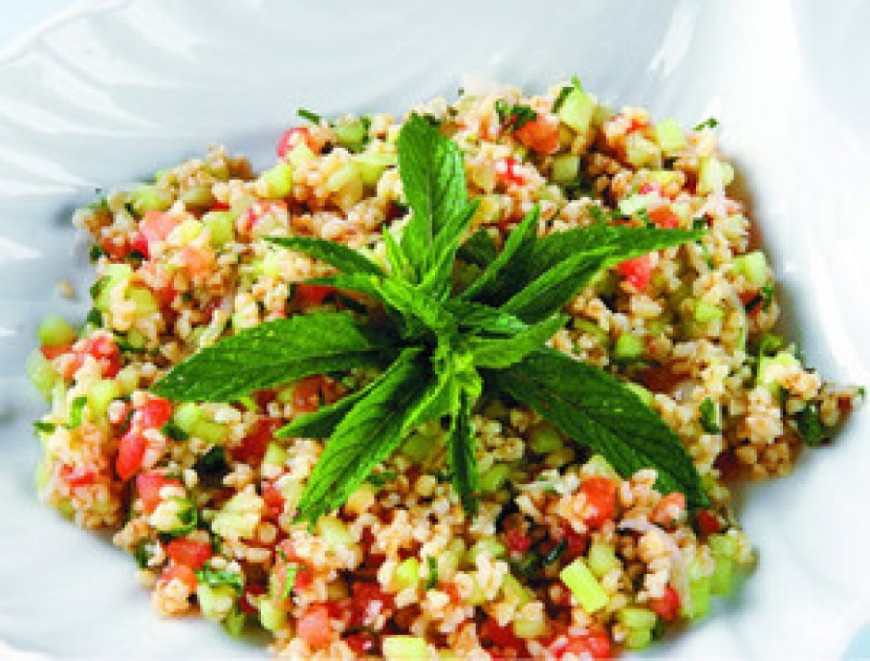 Mélanger délicatement tous ces ingrédients avec le boulgour et assaisonner avec le sel, le poivre, le jus de citron et l’huile d’olive. Laisser refroidir au moins une heure au réfrigérateur. Servir sur un beau plat avec quelques feuilles de menthe en décoration.