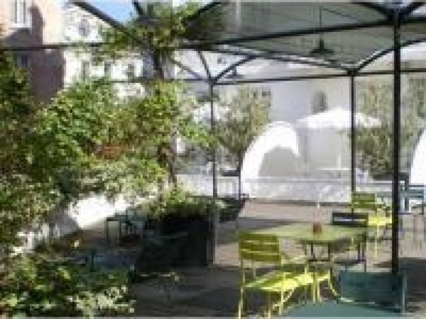 Une récré en douce, bien calée sur un fauteuil avec vue sur l'océan des toits de la ville, la Saône paresseuse à nos pieds, Fourvière en guise de parasol... Et comme préau de charme, la terrasse du Collège Hotel.