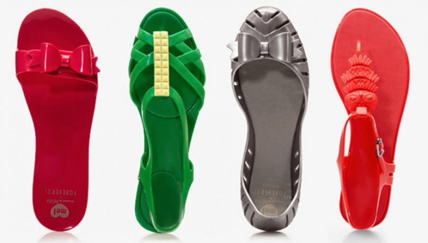 Une nouvelle qui réjouira les shoes-addict ! Inspirées des « jellies » (plus connues en France sous le nom de méduses, les atroces chaussures de plage de notre enfance), cette collection entièrement en plastique imaginée par Melissa les rend beaucoup plus glamour et surtout vraiment désirables ! Depuis la sortie des Crocs, on pensait être incapable d’avoir un jour un coup de cœur pour des chaussures en plastique. C’était sans compter sur Forever 21 et Melissa.