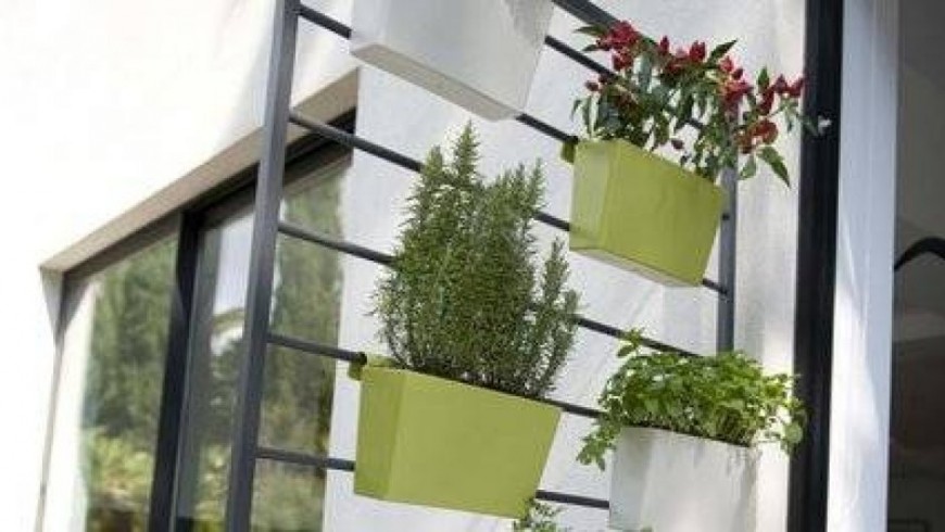 A partir d'un bac posé au sol et plaqué contre le mur, vous pouvez créer un tableau végétal sur votre balcon. Pour cela, fixez à 1 mètre du bac, un vaste cadre chiné. A l'intérieur de ce cadre, fixez quelques tasseaux qui le traverseront d'un bout à l'autre. Ainsi, les plantes grimpantes (issues du bac posé au sol), finiront par se l'approprier, créant une mise en scène végétale, arty et poétique…