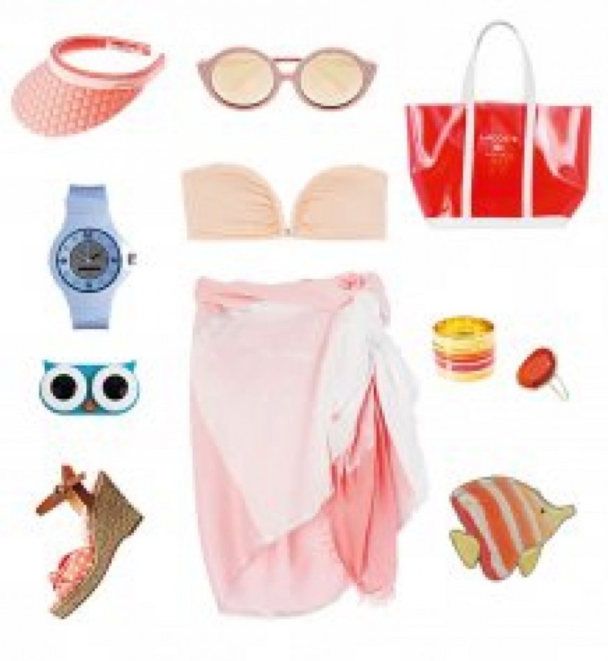Bikini bandeau, compensées en corde, solaires papillon XXL, foulard rose bonbon enroulé autour de la taille, Cabas rouge électrique, montre pastel et MP3 : les filles vous voici parées pour bien commencer l’été.