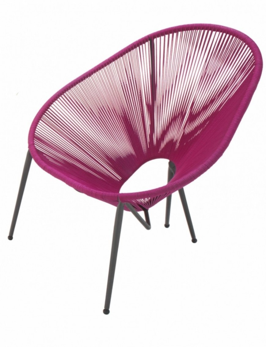 Fauteuil "Moretta" structure en acier galvanisé recouvert de corde élastique 100 % polypropylène, L 80 x P 77 x H 94 cm. Castorama, 89,90 €. www.castorama.fr