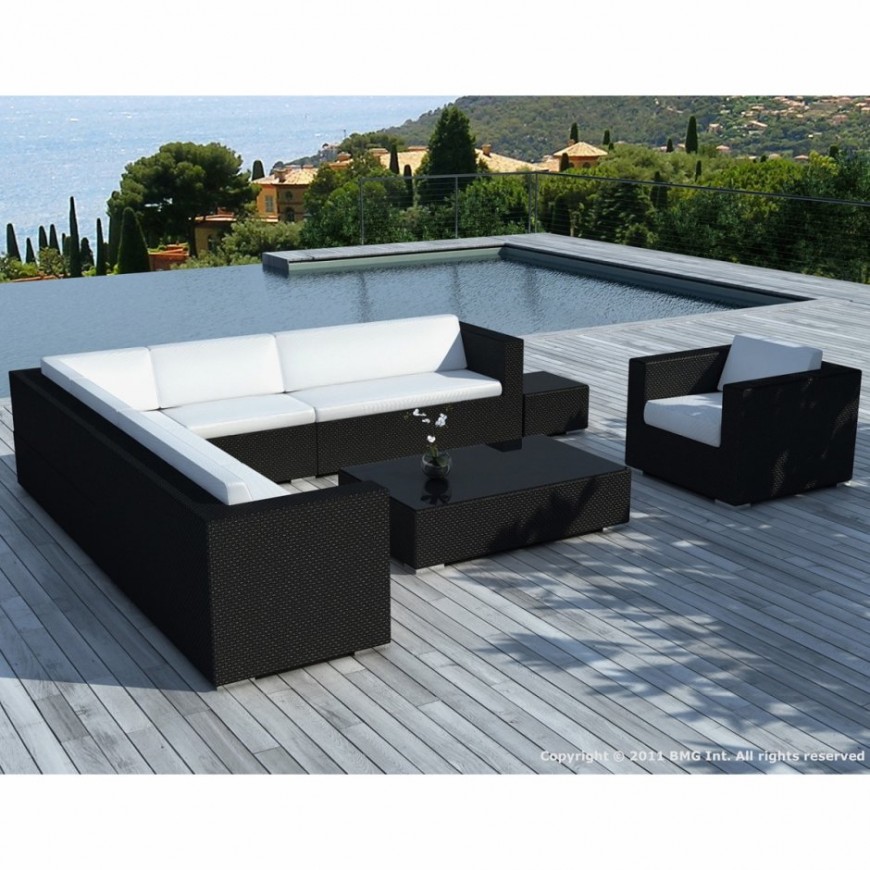 Ce grand salon de jardin noir long sera une pièce maitresse de votre déco extérieur. Vous ne vous trompez pas en achetant ce produit quelque peu irrésistible. Vous allez l'adorer au point de ne plus vouloir le quitter. Cet ensemble comprend 1 canapé d'angle, 1 fauteuil et 1 table basse vitrée. Les plus :