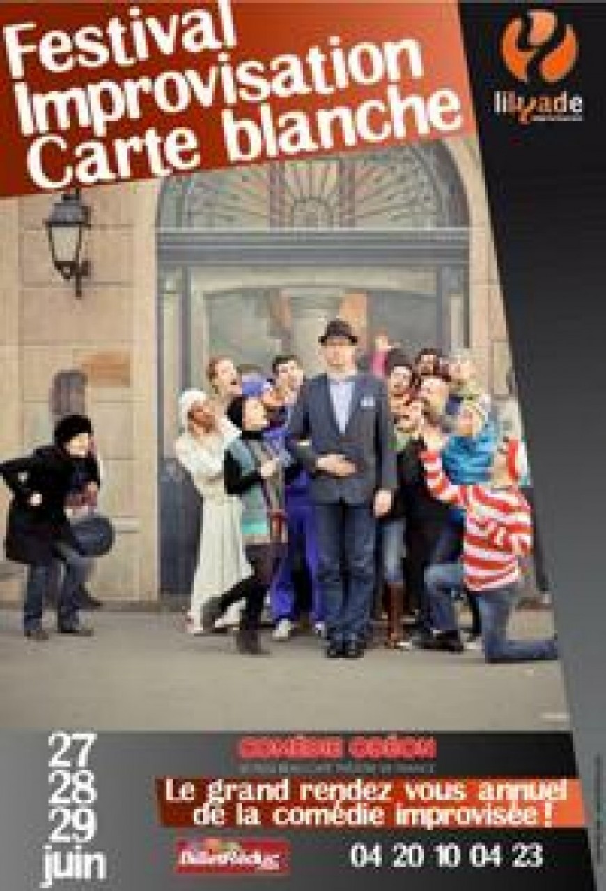 Depuis 2004, la Lilyade, une troupe de comédiens formée en 1995, organise le Festival d'improvisation Carte Blanche. Cette année, la Lilyade convie des pointures de l'improvisation francophone pour partager des concepts de jeu inédits à la Comédie Odéon. Trois soirées exceptionnelles où vous aurez l'occasion de voir six spectacles (deux par soir) mettant en avant la Comédie improvisée.